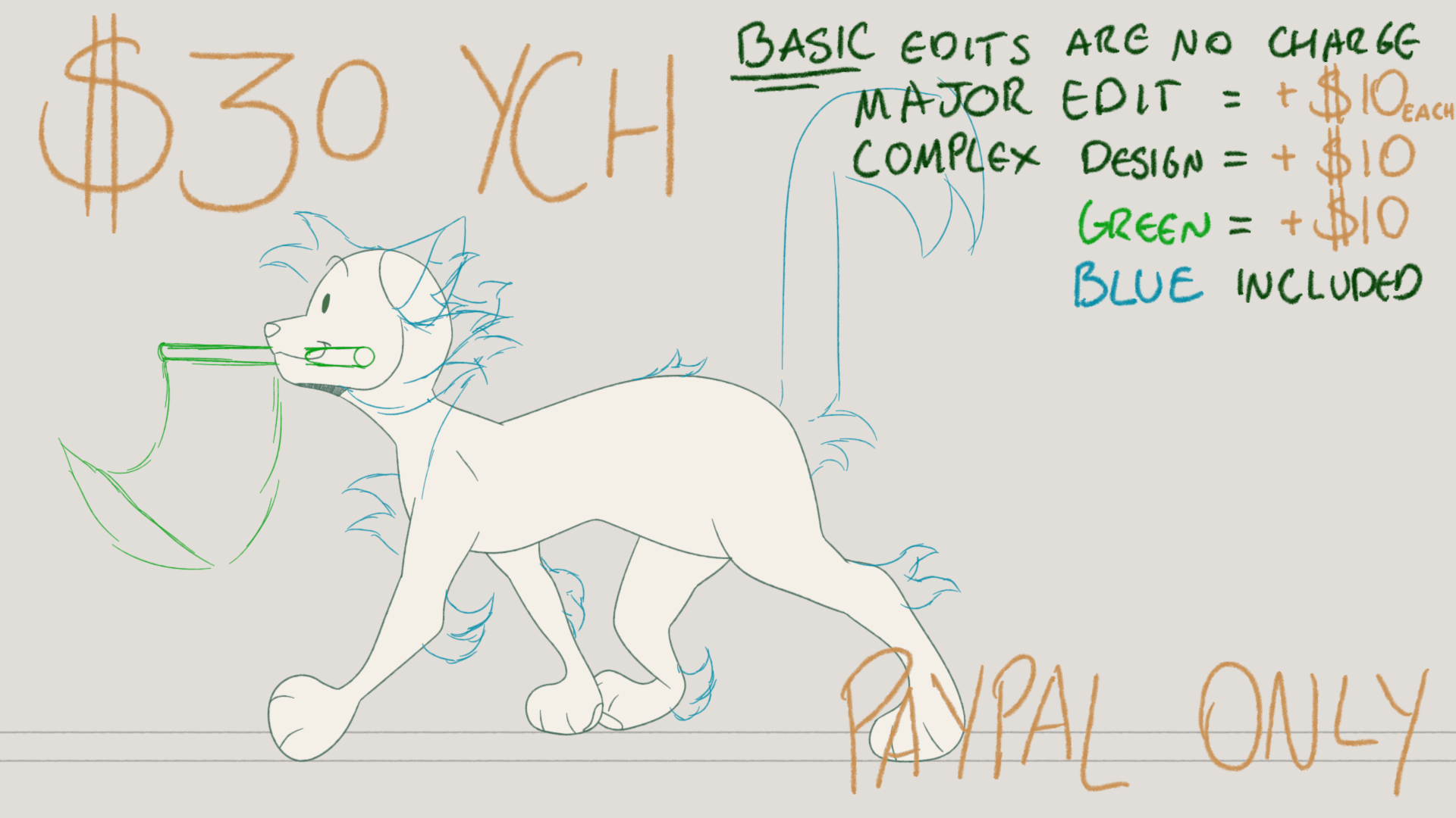 I take commissions through PayPal only currently with two main options! The options are as follows: